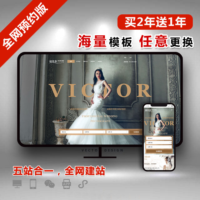 套餐包含:PC网站+手机站+微站+APP+微信小程序。五站合一,全网建站套餐;海量模板,任意更换。