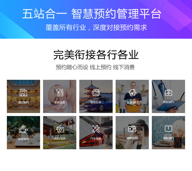 完美衔接各行各业,预约随心而设,线上预约,线下消费。